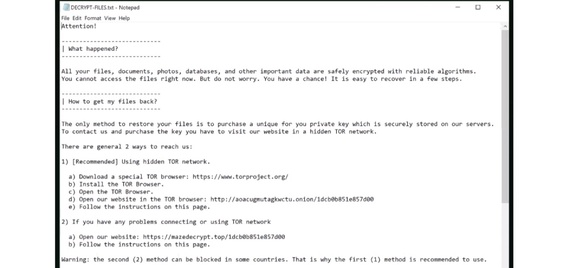 If someone using the computer clicks on the Notepad file as requested, they are taken to a series of instructions on downloading a TOR web browser and then going to a specific URL. At that website, which hackers want to have accessed via TOR so it cannot be tracked, a ransom payment can be made to unlock the files and other documents that have been held hostage.